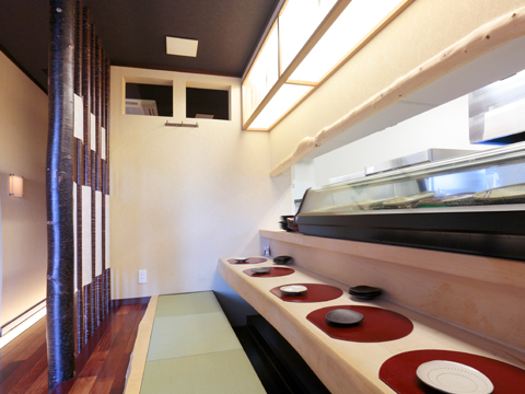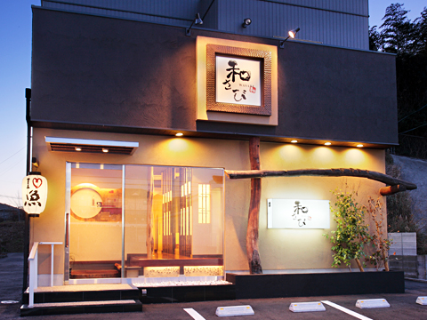 【和さび】 和風のイメージ希望だったので使用した木材はほぼすべて市場に行き、直接選びました。和風っぽさを崩さず、またあまり古さを出しすぎずに内装を選んで完成。八幡西区で人気のお店になっています。