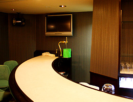 【スナック】 大人の隠れ家を意識して、濃い色を基本とした内装に。落ち着いた大人の雰囲気を演出しています。